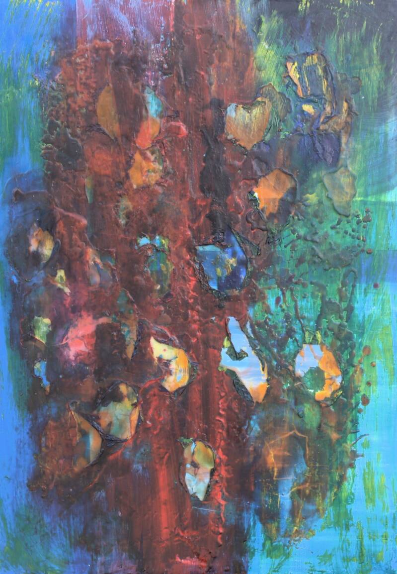 73 * 50 cm Wachs & Lack auf Keilrahmen; Preis auf Anfrage.
